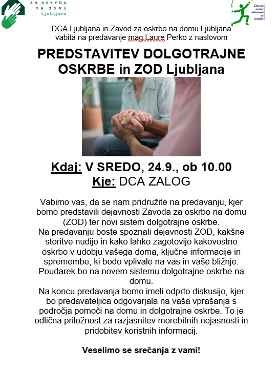 Predstavitev dolgotrajne oskrbe in ZOD Ljubljana, 24. 9. Post author:Mateja Kovšca Post published:17. septembra, 2025 Post category:Kaj nas čaka You Might Also Like Miselne igre, 7. 10. 2. oktobra, 2025 Spontani nastop plesne telovadbe, 1. 10. 26. septembra, 2025 Z jogo proti stresu, 19. 9. 11. septembra, 2025