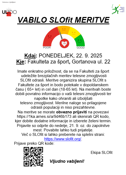 SLOfit meritve, 22. 9. Post author:Mateja Kovšca Post published:17. septembra, 2025 Post category:Kaj nas čaka You Might Also Like Qi Gong, 6. 10. 29. septembra, 2025 Italijanščina: nova začetna skupina 9. oktobra, 2025 Predavanje: Zakaj z leti večkrat pademo?, 18. 9. 11. septembra, 2025