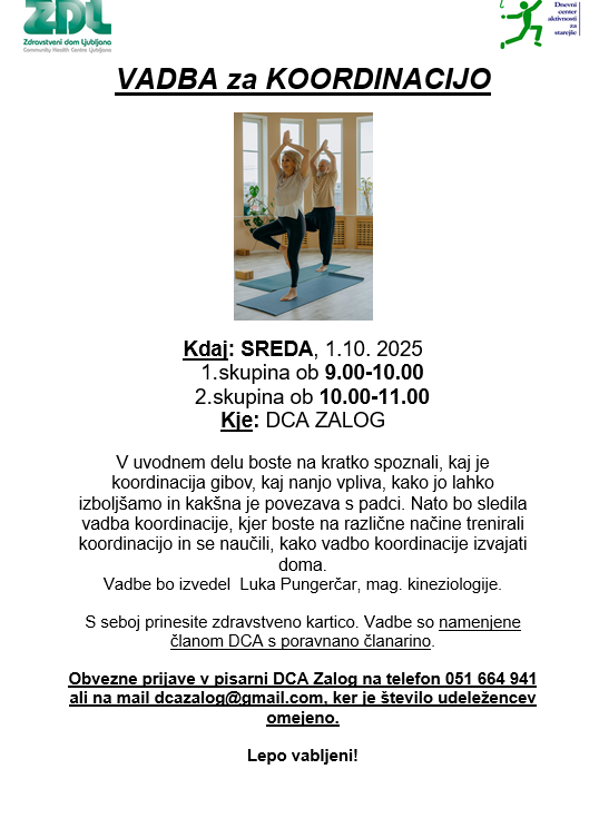 Vadba za koordinacijo, 1. 10. Post author:Andreja Hartner Post published:24. septembra, 2025 Post category:Kaj nas čaka You Might Also Like SLOfit meritve, 22. 9. 17. septembra, 2025 Pogovori na poti k sebi, 2. 10. 2. oktobra, 2025 Miselne igre, 7. 10. 2. oktobra, 2025
