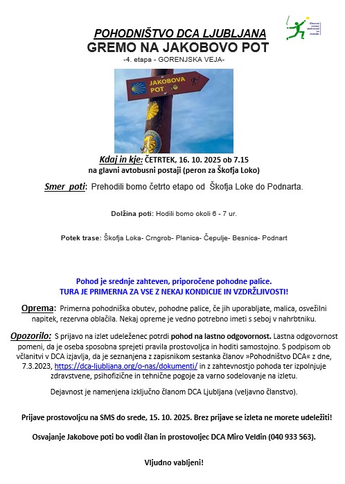 Gremo na Jakobovo pot, 16. 10. Post author:golovec Post published:8. oktobra, 2025 Post category:Kaj nas čaka You Might Also Like Qi Gong, 6. 10. 29. septembra, 2025 Nabiranje gob in kostanja, 8. 10. 2. oktobra, 2025 DCA Puhova praznuje 19 let, 10. 10. 2. oktobra, 2025