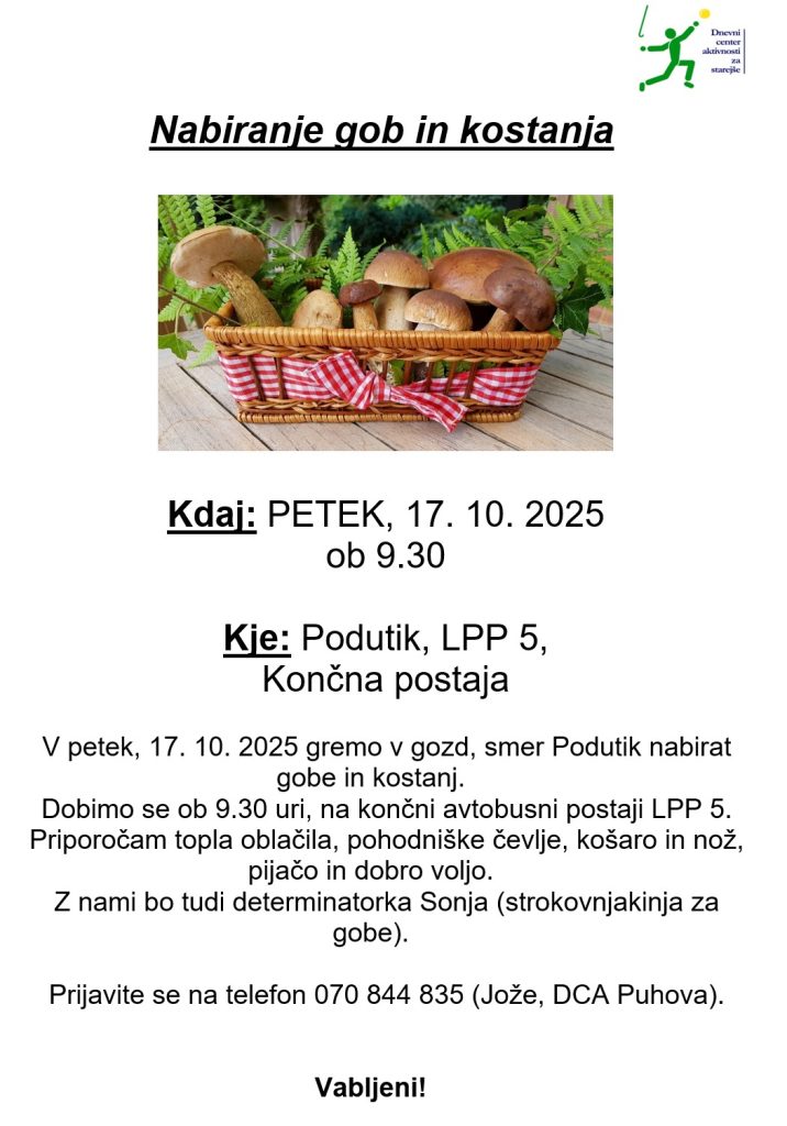 Nabiranje gob in kostanja, 17. 10. Post author:golovec Post published:13. oktobra, 2025 Post category:Kaj nas čaka You Might Also Like Plesne urice, 14. 10. 13. oktobra, 2025 DCA Gosposvetska praznuje 16 let, 17. 10. 13. oktobra, 2025 Čustvena koda, 16. 10. 9. oktobra, 2025