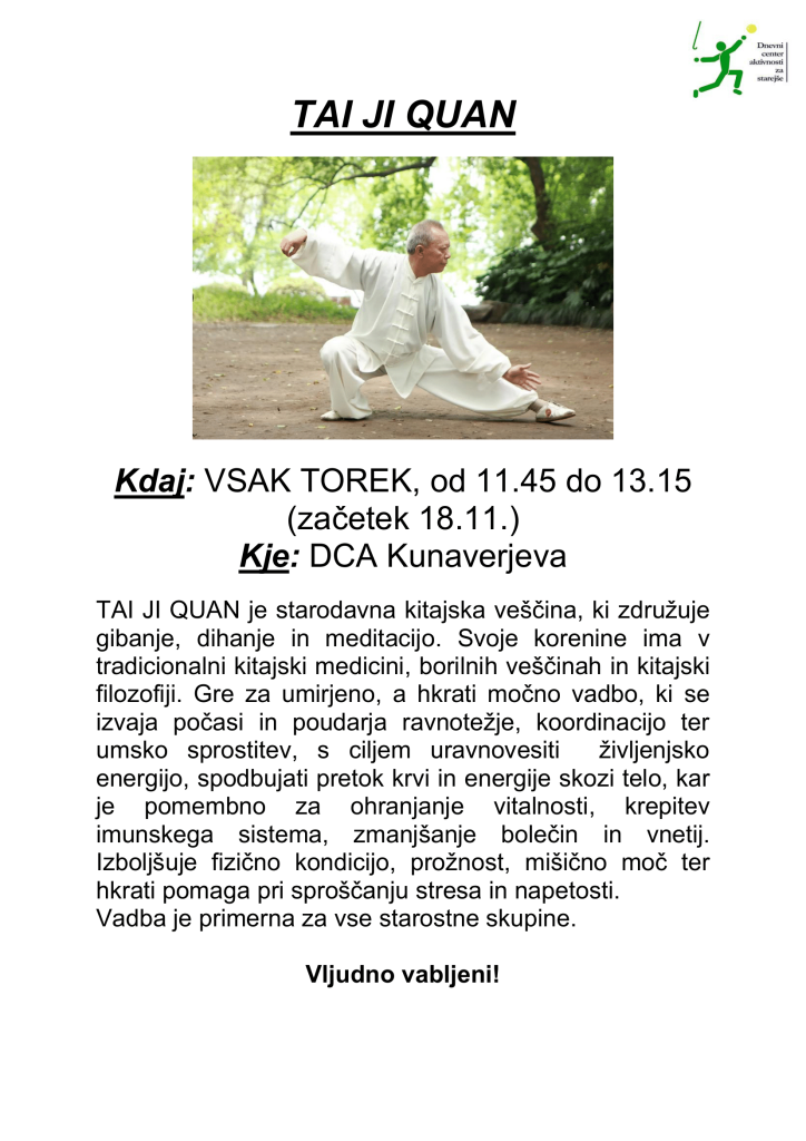 Tai ji quan, 18. 11. Post author:golovec Post published:12. novembra, 2025 Post category:Kaj nas čaka You Might Also Like Gremo po Jakobovi poti – 5. etapa, 20. 11. 14. novembra, 2025 Plesno-funkcionalna vadba, 18. 11. 12. novembra, 2025 Sestanek članov DCA Povšetova, 11. 11. 7. novembra, 2025