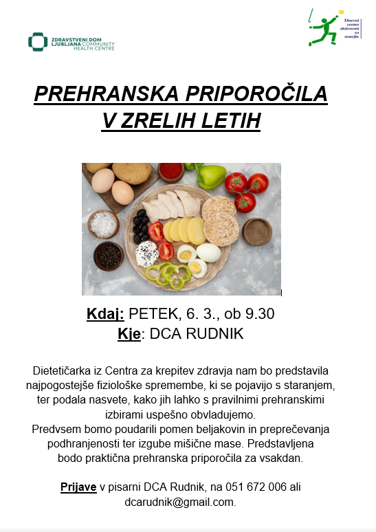 Prehranska priporočila v zrelih letih Post author:Sara Dalila Hočevar Post published:26. februarja, 2026 Post category:Kaj nas čaka Post comments:0 Comments You Might Also Like DCA Karneval, 17. 2. 28. januarja, 2026 Potopisno predavanje: Romunija, 19.3. 10. marca, 2026 Pevski zbor-petje narodnih pesmi, 27. 2. 20. februarja, 2026 Dodaj odgovor Prekliči odgovorCommentEnter your name or username to comment Enter your email address to comment Enter your website URL (optional) Shrani moje ime, e-pošto in spletišče v ta brskalnik za naslednjič, ko komentiram.