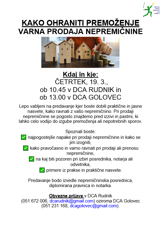 Kako ohraniti premoženje Post author:Sara Dalila Hočevar Post published:11. marca, 2026 Post category:Kaj nas čaka Post comments:0 Comments You Might Also Like Pohod – Hitri polžki, 6.2. 2. februarja, 2026 Čajanka in okraševanje božične jelke, 19. 12. 16. decembra, 2025 Pevski zbor-petje narodnih pesmi, 27. 2. 20. februarja, 2026 Dodaj odgovor Prekliči odgovorCommentEnter your name or username to comment Enter your email address to comment Enter your website URL (optional) Shrani moje ime, e-pošto in spletišče v ta brskalnik za naslednjič, ko komentiram.