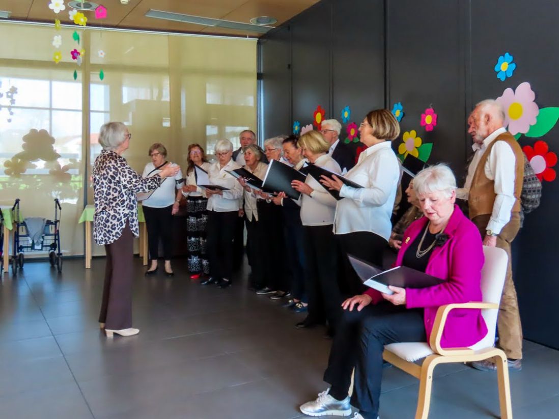 Zboru so se pri petju pridružili tudi članice in člani centra starejših ter s skupnimi močmi pričarali čudovito in toplo vzdušje ob materinskem dnevu.