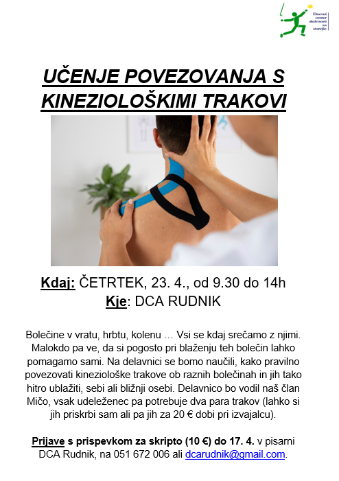 Delavnica povezovanja s kineziološkimi trakovi Post author:Sara Dalila Hočevar Post published:2. aprila, 2026 Post category:Izpostavljeno / Kaj nas čaka Post comments:0 Comments You Might Also Like Kolaž spominov na 2023 in uspešen skok v 2024 29. decembra, 2023 Potopisno predavanje: Romunija, 19.3. 10. marca, 2026 Otvoritev razstave slikarjev DCA v Mestni hiši, 25. 11. 17. novembra, 2025 Dodaj odgovor Prekliči odgovorCommentEnter your name or username to comment Enter your email address to comment Enter your website URL (optional) Shrani moje ime, e-pošto in spletišče v ta brskalnik za naslednjič, ko komentiram.