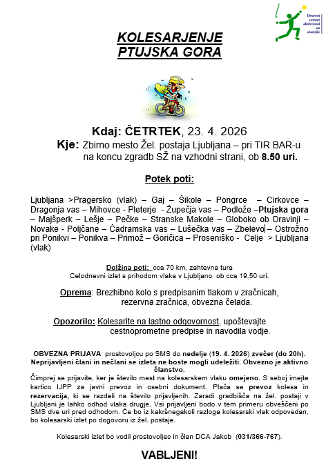 Kolesarjenje, 23. 4. Post author:Sara Dalila Hočevar Post published:13. aprila, 2026 Post category:Kaj nas čaka Post comments:0 Comments You Might Also Like Zanimive zgodbe Narodnega muzeja Slovenije 26. marca, 2026 Na poti k sebi: Umetnost poslušanja 2. marca, 2026 Zanimive zgodbe iz Narodnega muzeja 23. marca, 2026 Dodaj odgovor Prekliči odgovorCommentEnter your name or username to comment Enter your email address to comment Enter your website URL (optional) Shrani moje ime, e-pošto in spletišče v ta brskalnik za naslednjič, ko komentiram.