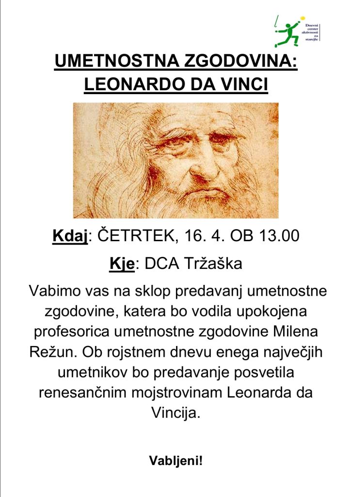 Umetnostna zgodovina: Leonardo da Vinci Post author:Sara Dalila Hočevar Post published:14. aprila, 2026 Post category:Kaj nas čaka Post comments:0 Comments You Might Also Like Joga za začetnike, 12. 1. 9. januarja, 2026 Delavnica sitotiska 11. marca, 2026 Izdelovanje rožic 3. marca, 2026 Dodaj odgovor Prekliči odgovorCommentEnter your name or username to comment Enter your email address to comment Enter your website URL (optional) Shrani moje ime, e-pošto in spletišče v ta brskalnik za naslednjič, ko komentiram.