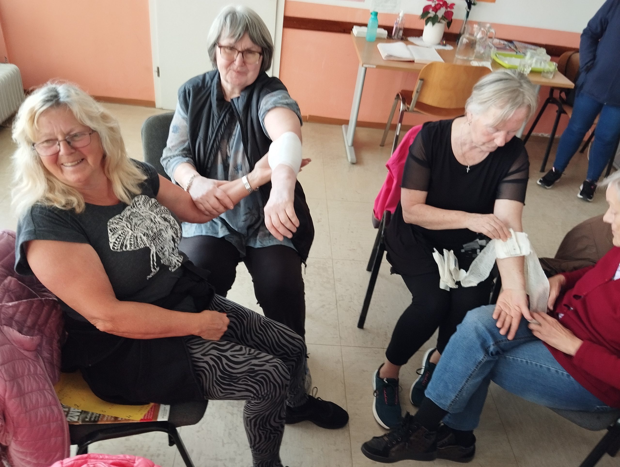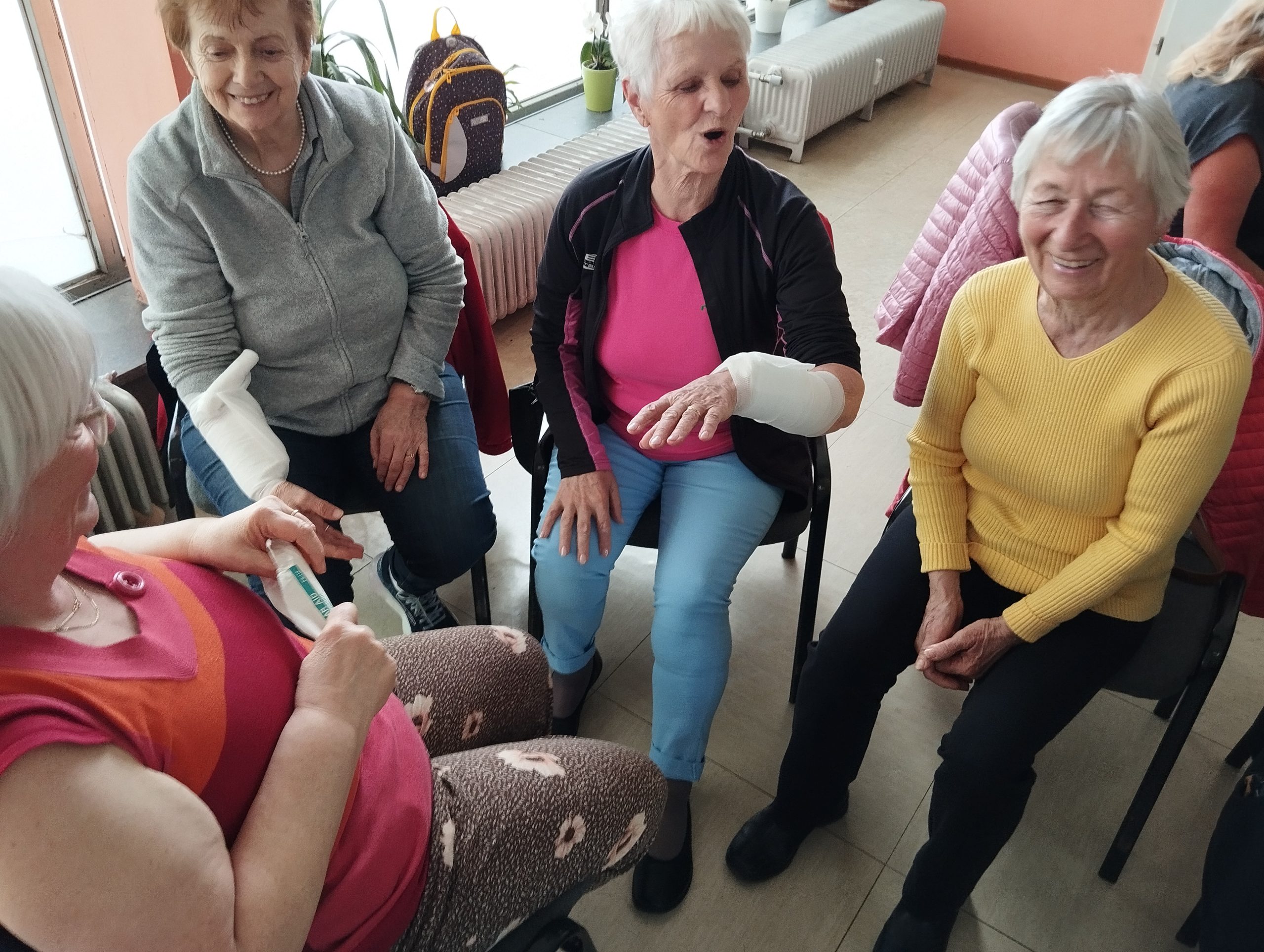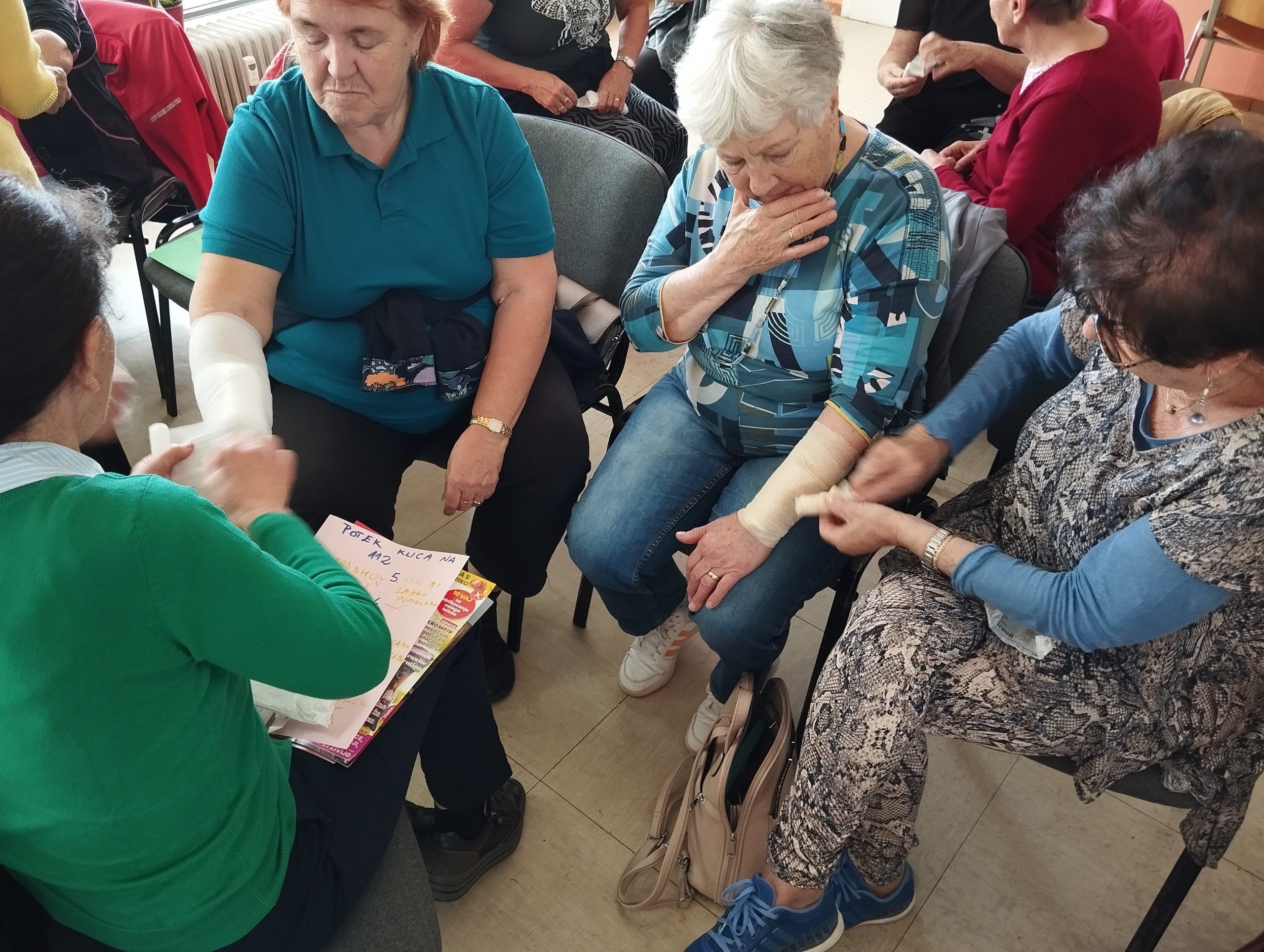 V sredo, 22. 4. smo v DCA Tržaška izvedli tečaj prve pomoči za dežurne prostovoljke. Naučile so se, kako reagirati pri pogostih poškodbah in bolezenskih stanjih, ki so prisotne pri starejši populaciji. Preizkusile so se v kvizu, kako poteka klic na 112 in v praksi uporabile kompresijsko prevezo. Izobraževanje smo zaključili na druženju ob kavi.